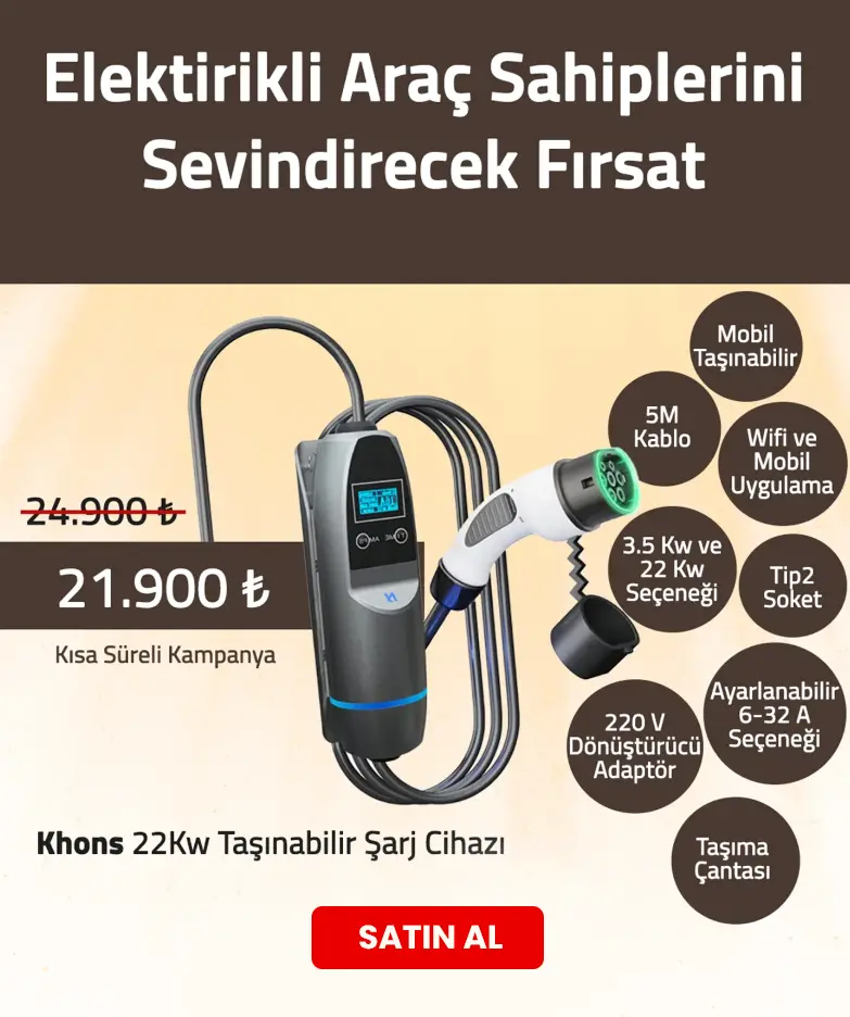 Khons Taşınabilir Elektrikli Araç Şarj İstasyonu Tek Faz, 16A , 3,7KW