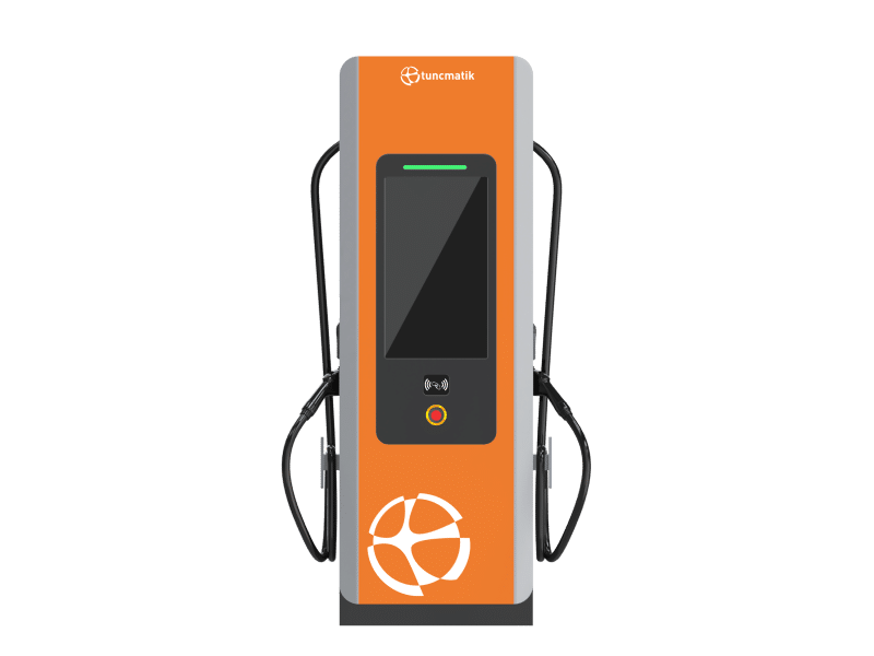 Tunçmatik PRO+ DC Şarj İstasyonu siz değerli müşterilerimiz için turbo mod ultra hızlı DC şarj cihazı modeli olup elektrikli aracınızı diğer model cihazlardan daha hızlı şarj edebilmektedir. Turbo mod özelliği sayesinde aynı anda bir veya iki aracı ultra hızlı şarj edebilir. İstenilen güce kadar güç kapasitesi ve güç paylaşım özellikleri ile yoğun lokasyonlarda tercih edilebilir. Bu cihaz aynı zamanda kullanıcı dostu 32″ Akıllı LCD Dokunmatik Panele sahiptir. Kontrol sistemi, güç kaynağı sistemi, dağıtılmış güç sistemi ve güç faktörü sistemi dahil olmak üzere tam modüler tasarıma sahip Tunçmatik PRO+ DC Charger, elektrikli araç sürücülerinin mümkün olan en kısa sürede araçlarını şarj etmelerini sağlar. Kısa süreli mola yerleri, otoyol dinlenme durakları ve benzin istasyonları için mükemmel bir çözüm olan PRO + DC Charger, kesintisiz bir kullanıcı deneyimi sağlar ve ECO enerji tasarrufu modu sayesinde gücü her zaman verimli bir şekilde tüketir. Elektrikli araç şarjı tamamlandığında, şarj tabancası bağlı olsa bile şarj istasyonu uyku moduna geçer (tüketim <35W), ancak şarj tabancası başka bir araca bağlıysa şarj istasyonu şarj etmeye devam eder. Dahili düşük gürültülü fanları ve kolay bakım için değiştirilebilir filtresi ile yerleşim alanlarında kolay ve sessiz çalışma için tasarlanmıştır.